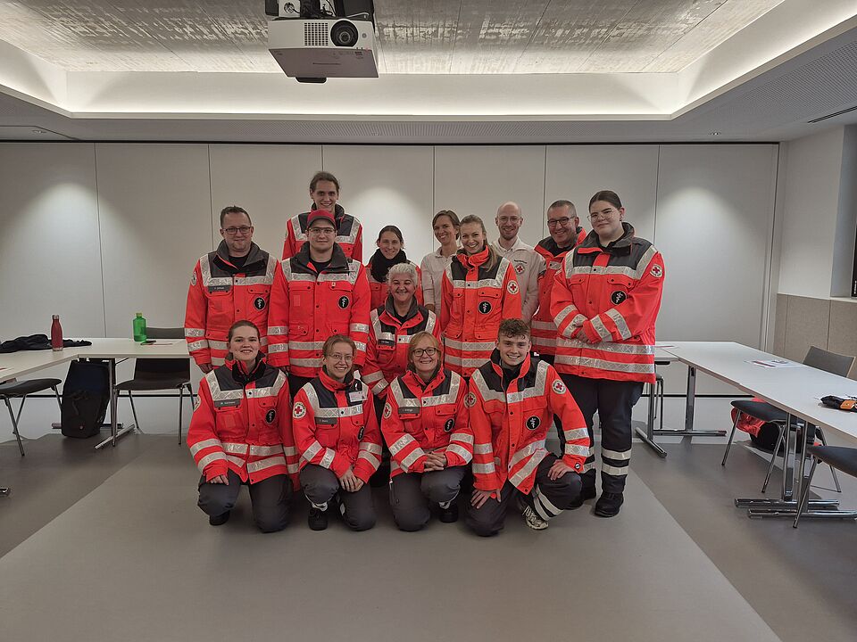 Bei der Abschlussprüfung, die aus einem schriftlichen sowie zwei praktischen Teilen besteht, könnten 14 Teilnehmende die Prüfungsteams überzeugen und sind nun startklar für ihre ersten Einsätze bei Sanitätsdiensten, im Helfer-vor-Ort-System oder bei Alarmierungen.
